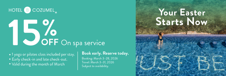 Plan ahead and escape to the Caribbean at Hotel B Cozumel. Enjoy turquoise waters, sunny days, and relaxing moments before the busy holiday season begins.