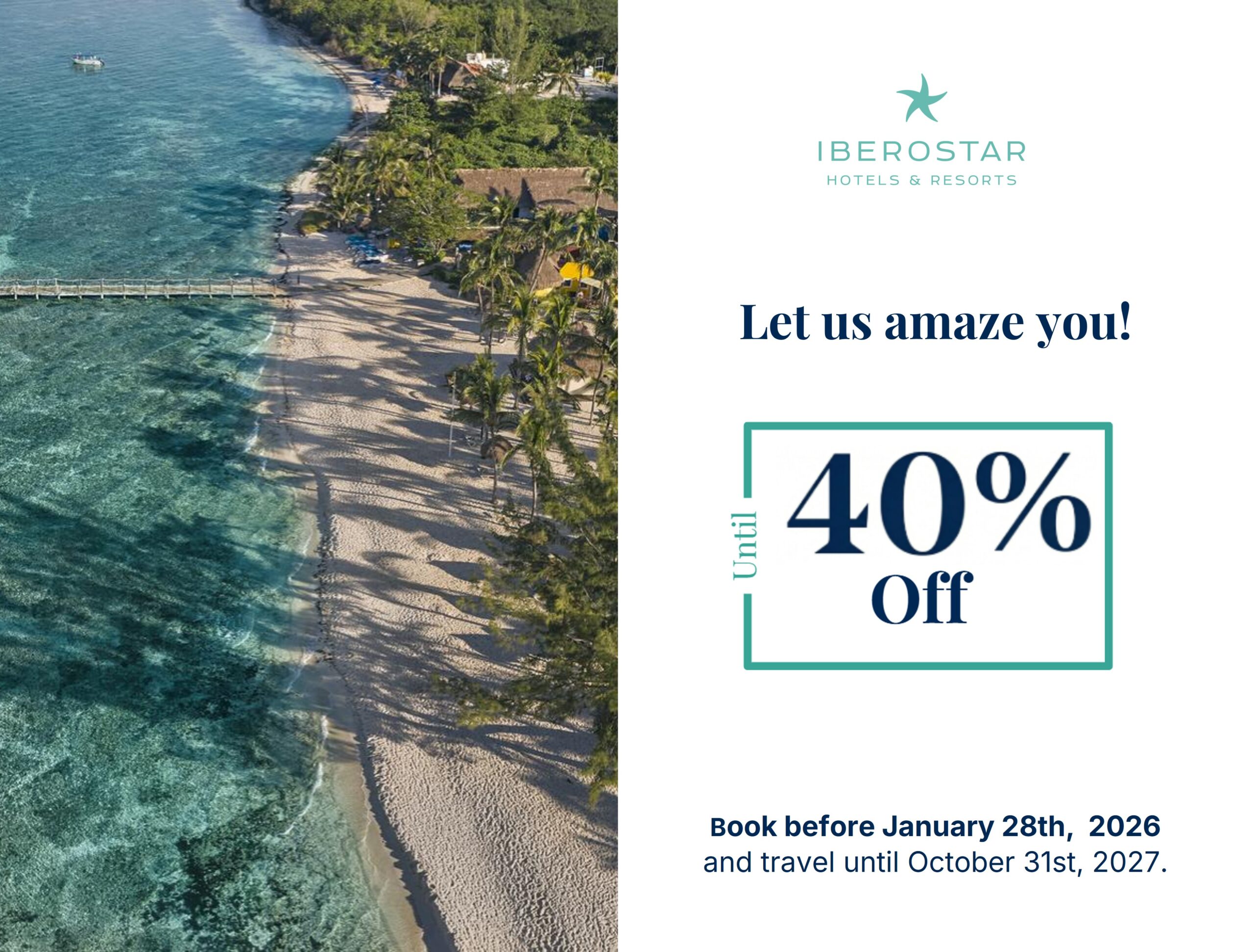Stay with us at Iberostar Waves Cozumel and receive a special rate of up to 40% off your stay